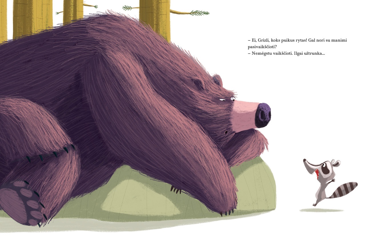 Grizlis – didžiulis, gauruotas meškinas, kuris nuolat niurzga. Jo mažajam draugui meškėnui dičkio niurzgėjimai nė motais. Ir nors Grizlis vis niurna, bet vis tiek seka paskui draugą, nes kartu…