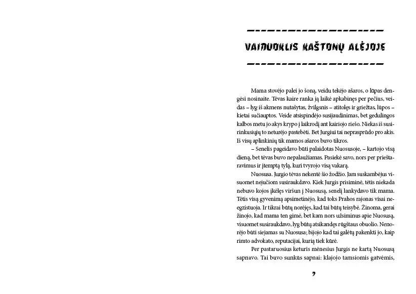 Žėrinčios Prahos viduryje plyti paslaptingas rajonas. Niekas nežino kodėl, bet ten neveikia elektra, nevažiuoja tramvajai, neįsijungia radijas, o mobilieji telefonai nepagauna signalo. Vietiniai tą vietą vadina Nuosusa. Nuo pirmojo Jurgio ir Enės nuotykio prabėgo keli mėnesiai. Nuosusą sukaustė speigas, negyvenamos gatvelės užpustytos sniegu. Tyrinėdami Nuosusą, vaikai atrado dar tamsesnę jos dalį – Kropinę. Regis, ši tamsi ir niūri vieta kelia grėsmę visam miestui. Tačiau didžiausias pavojus slypi ne Nuosusos šešėliuose, o vaikų santykiuose. Jurgio ir Enės draugystė ima braškėti: abu turi paslapčių, pasitikėjimas vienas kitu slopsta. Ar paslaptys nesugriaus jų draugystės? Antrojoje dalyje Jurgiui ir Enei teks ne tik įminti tamsias Nuosusos paslaptis, bet ir priimti sudėtingus sprendimus, susijusius su draugyste, pasitikėjimu, atsakomybe. Serija „Nuosusos kronikos“ jungia Jaroslavo Foglaro ir Jules’io Verne’o knygų magiją, Jo Nesbø kūrinių įtampą ir tiek paslapčių, kiek rastume Dano Browno kūrinyje „Da Vinčio kodas“.